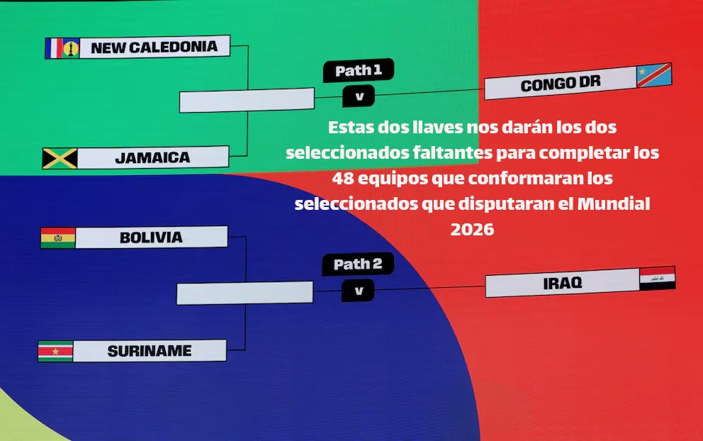 El formato será un mini torneo: los cuatro equipos peor ubicados en el ranking FIFA jugarán semifinales, mientras que los dos mejor posicionados avanzarán directamente a las finales. Los ganadores de esas finales obtendrán los últimos dos boletos al Mundial. Entre los cruces destacados, Bolivia enfrentará a Surinam, mientras que Nueva Caledonia jugará ante Jamaica, con Irak y Congo esperando en la instancia decisiva.