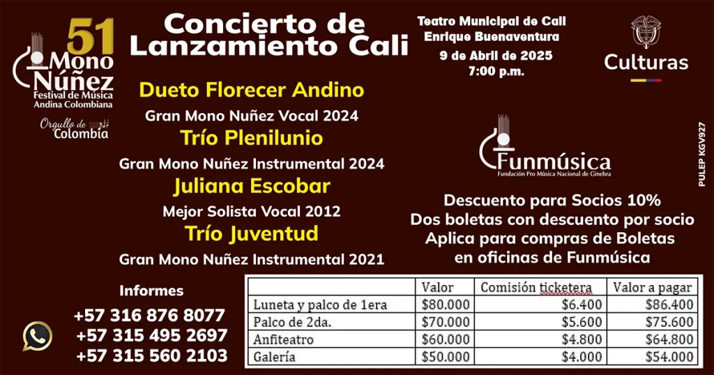 El 9 de abril, Cali acogerá el lanzamiento del 51 Festival Mono Núñez en el Teatro Municipal Enrique Buenaventura. Con presentaciones de ganadores anteriores, el evento resaltará la riqueza de la música andina colombiana, ofreciendo una experiencia inolvidable para los asistentes.